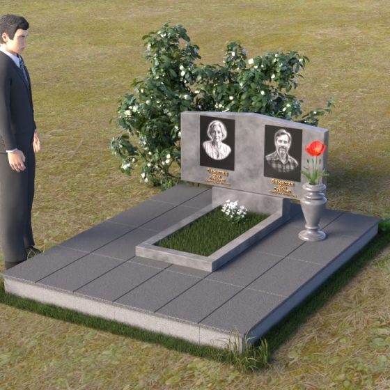 Форма этого памятника символизирует покой и защиту. Прямые линии и четкие грани говорят о стабильности и надежности, а скошенные углы смягчают строгость и добавляют нотку современности. Общая композиция создает ощущение умиротворения и вечности, напоминая о том, что память о близких будет жить в наших сердцах всегда.