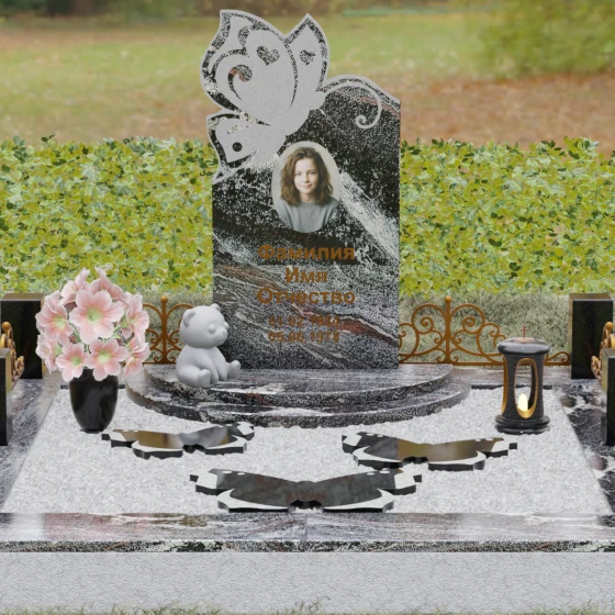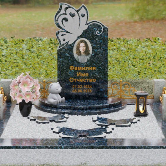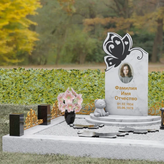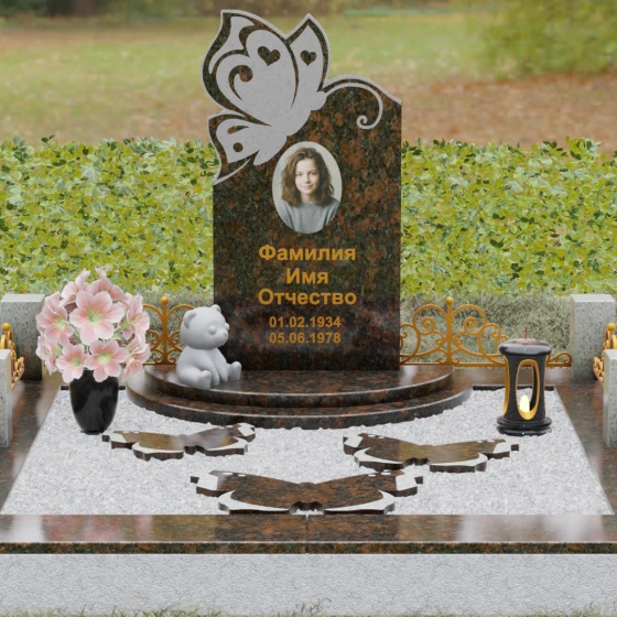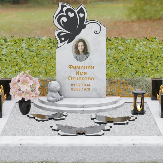 Кому подойдет: Это ритуальное изделие чаще всего выбирают для оформления захоронений молодых женщин или детей. Образ бабочки в мировой культуре неразрывно связан с преображением и вечной жизнью, что помогает близким найти крупицу утешения в эстетике и светлом символизме. Благодаря сочетанию сложной ручной резьбы и надежности природного камня, этот ансамбль станет достойным воплощением вашей любви, выделяясь на фоне типовых форм своей одухотворенностью и качеством исполнения.