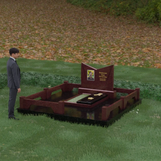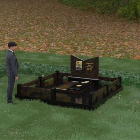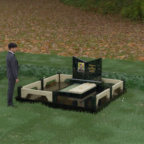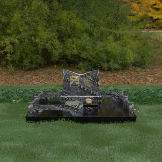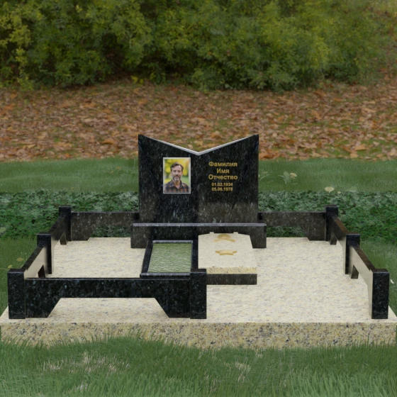 Кому подойдет: Данный мемориальный комплекс разработан для тех, кто хочет подчеркнуть особые заслуги и статус близкого человека. Строгая геометрия, наличие рельефных звезд на плите и форма «раскрытой книги» делают это надгробие идеальным выбором для оформления захоронения военного, ветерана, государственного служащего или человека, чей жизненный путь был примером стойкости и мудрости. Это выбор тех, кто ценит надежность, эстетическую завершенность и безукоризненное качество исполнения, которое останется неизменным для многих поколений.