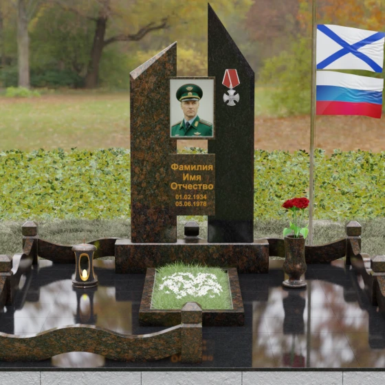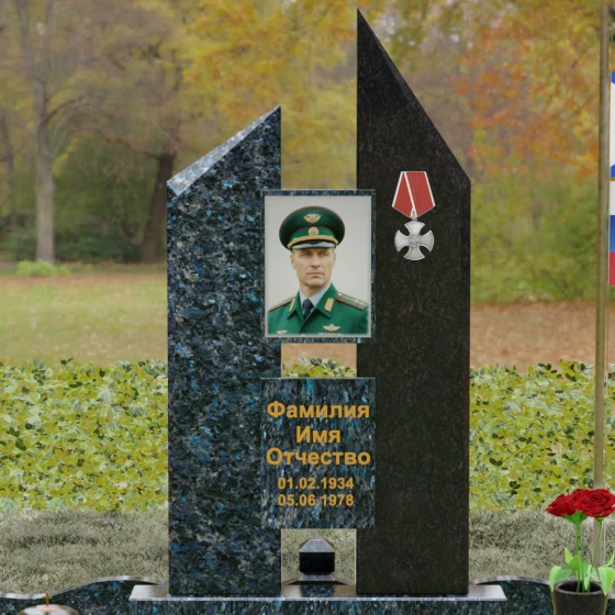 Увековечивание памяти — это не просто дань традиции, а создание монументального символа, способного пронести сквозь десятилетия историю личности, её подвигов и характера. Данная мемориальная композиция разработана как архитектурное воплощение стойкости и мужества, где каждая линия и грань камня подчеркивают значимость жизненного пути. Массивность конструкции и безупречная геометрия создают атмосферу торжественного покоя, превращая место захоронения в величественный мемориал, вызывающий глубокое уважение у каждого, кто приходит почтить память ушедшего.