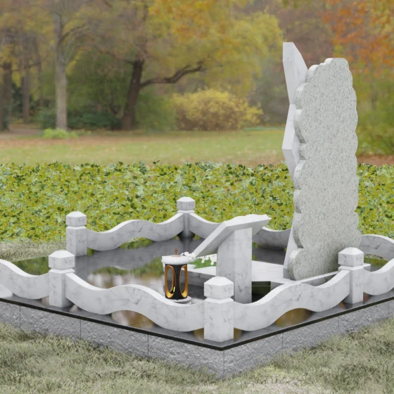 Каждая деталь этого ансамбля наполнена глубоким смыслом. Асимметрия и сочетание двух видов камня символизируют единство земного и небесного путей, светлых и темных страниц человеческой судьбы. Ступенчатый край напоминает лестницу, ведущую вверх, — символ духовного восхождения. В правой части комплекса установлена изящная каменная подставка с раскрытой книгой — это символ завершенной жизненной повести, мудрости и памяти, которая останется доступной близким.