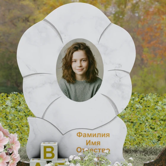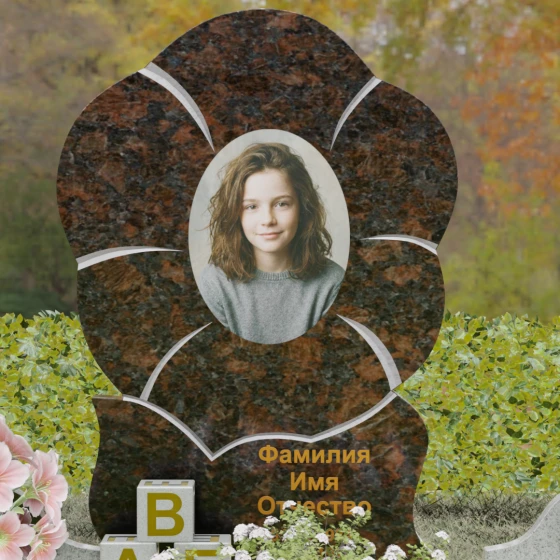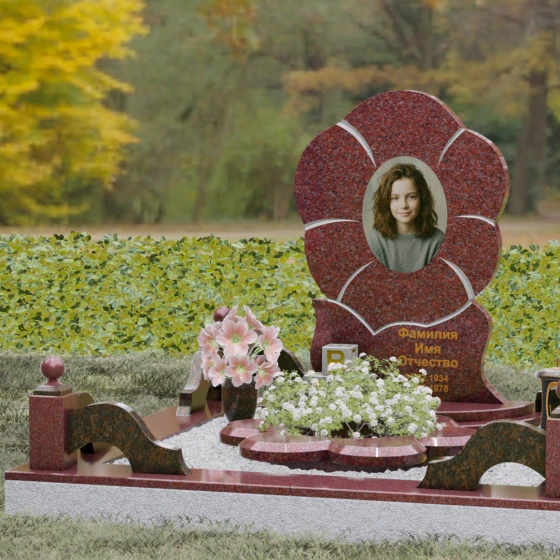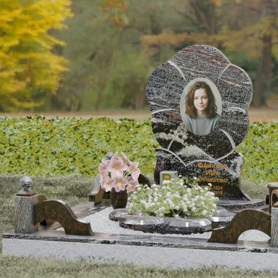 Каждая деталь этого проекта наполнена глубоким смыслом. Цветок в мемориальной пластике традиционно символизирует чистоту души, её расцвет и вечную весну в ином мире. Плавные, текучие линии боковых граней олицетворяют покой и отсутствие земных тревог. Декоративные резные блоки у основания напоминают о начале жизненного пути, о безмятежности и искренности, что делает эту модель особенно подходящей для увековечивания молодых и светлых личностей. Этот ансамбль создает ощущение защиты и умиротворения, превращая место захоронения в пространство светлой печали.