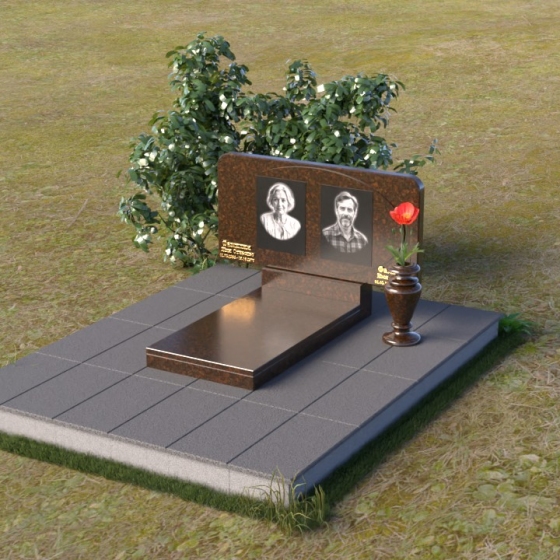 Этот ритуальное изделие – воплощение сдержанной элегантности и глубокого уважения. Прямоугольная стела с мягко скругленными углами создает ощущение завершенности и покоя. Верхняя часть памятника, словно рамка для воспоминаний, украшена выгравированными портретами. Полированная поверхность камня, подобно зеркалу, отражает свет, создавая игру бликов и теней, что придает глубину и объем изображениям. Горизонтальная плита под портретами добавляет композиции устойчивости и визуально расширяет пространство. Все элементы памятника объединены лаконичным дизайном, который говорит о достоинстве и вечной памяти.