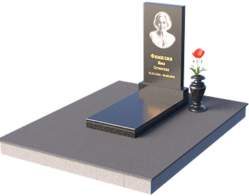 Данная мемориальная композиция представляет собой две стелы, выполненные из полированного гранита глубокого черного цвета, соединенные между собой. Каждая стела имеет мягкую, волнообразную форму верхней части, словно склоненную в тихой скорби. Боковые грани плавно скруглены, что придает изделию мягкость и элегантность. На лицевой поверхности стел выгравированы портреты, имена и даты, выполненные с высокой детализацией. Разделяет стелы искусно вырезанный крест, лаконичный и строгий, устремленный ввысь. Его грани контрастируют с полированной поверхностью, создавая игру света и тени, придающую рельефу дополнительный объем. Под стелами располагается горизонтальная плита, также выполненная из черного гранита, с зеркальной полировкой, отражающей небо и окружающий мир, символизируя вечность и непрерывность жизни. Дополняет композицию изящная ваза из гранита, предназначенная для живых цветов, которые станут символом любви и памяти.