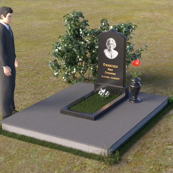 Форма этого гранитного монумента идеально подходит для размещения портрета усопшего. Благодаря своей вытянутой форме, он позволяет создать гармоничную композицию, где портрет будет занимать центральное место и привлекать к себе внимание. Золотое начертание имени и дат жизни на фоне темного полированного гранита выглядит особенно торжественно и выразительно. Вы можете выбрать любой из восьми доступных вариантов камня, чтобы подчеркнуть индивидуальность образа и создать памятник, который будет полностью соответствовать вашим представлениям о красоте и гармонии. Гранит амфиболит с его неповторимыми разводами, Балтик грин с его мягким зеленым оттенком, Блю Перл с его искрящимися вкраплениями, Габбро-диабаз с его глубоким черным цветом, Дымовский с его теплым коричневым оттенком, Лезниковский с его насыщенным красным цветом, Мансуровский с его светлым и благородным видом, или же классический мрамор Тассос – каждый из этих камней обладает своим уникальным характером и способен передать всю глубину ваших чувств. Подберите камень, который лучше всего отражает характер человека, которому посвящен этот гранитный монумент.